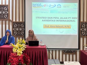 Selain itu, Prof. Abna juga mengungkapkan sejumlah tantangan yang sering dihadapi dalam proses akreditasi internasional, baik dari sisi kesiapan dokumen, adaptasi terhadap sistem OBE, maupun kebutuhan peningkatan kapasitas SDM di tingkat program studi dan fakultas.