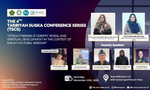 Fakultas Tarbiyah dan Keguruan UIN Sultan Syarif Kasim Riau kembali menyelenggarakan TSCS, konferensi internasional tahunan yang dilaksanakan oleh FTK UIN Suska Riau. Tahun ini TSCS memasuki penyelenggaraan seri keempat, The 4th Tarbiyah SUSKA Conference Series (TSCS) pada Sabtu, 22 November 2025 bertempat di Aula Rektorat Lantai 5. Kegiatan yang mengusung tema “Strengthening Students’ Moral and Spiritual Development in the Context of Malay Cultural Wisdom” ini dibuka secara resmi oleh Dekan FTK UIN Suska Riau, Prof. Dr. Amirah Diniaty, M.Pd., Kons.